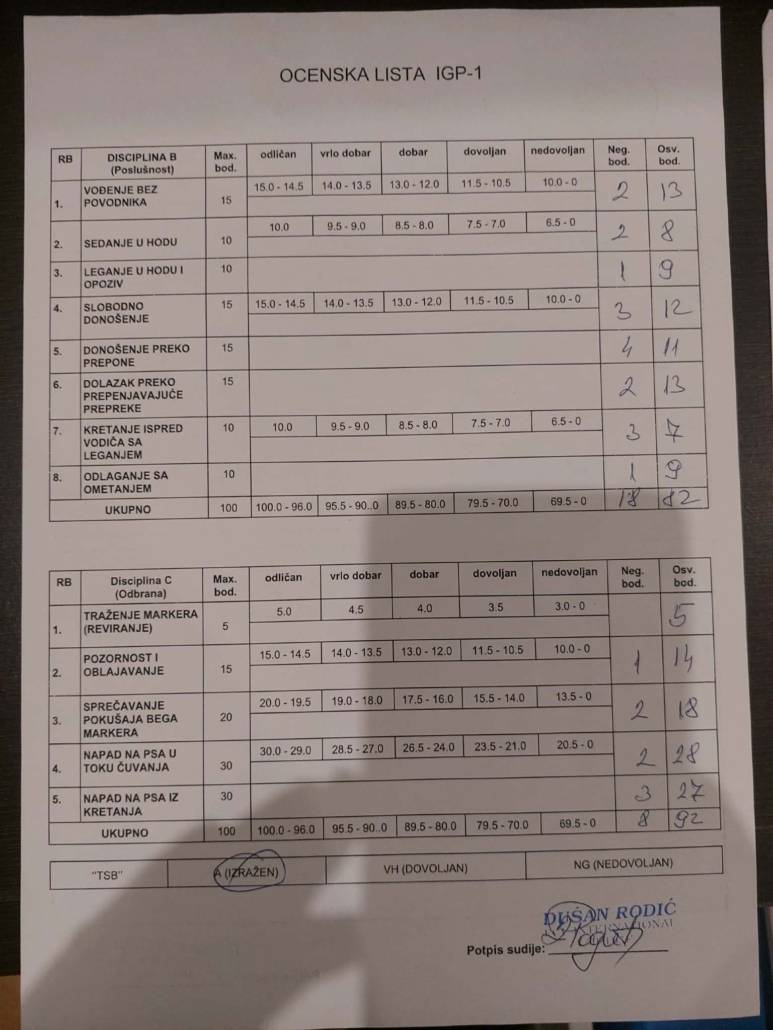 SG1 (top in the Jungen Klasse), IGP, BH, AD, Kor, HD1/ED1,